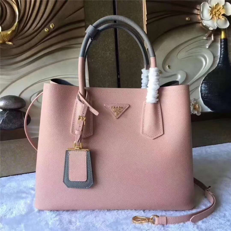 1BG775 Prada普拉達 雙手柄 新款拼色 名媛手提包 粉色