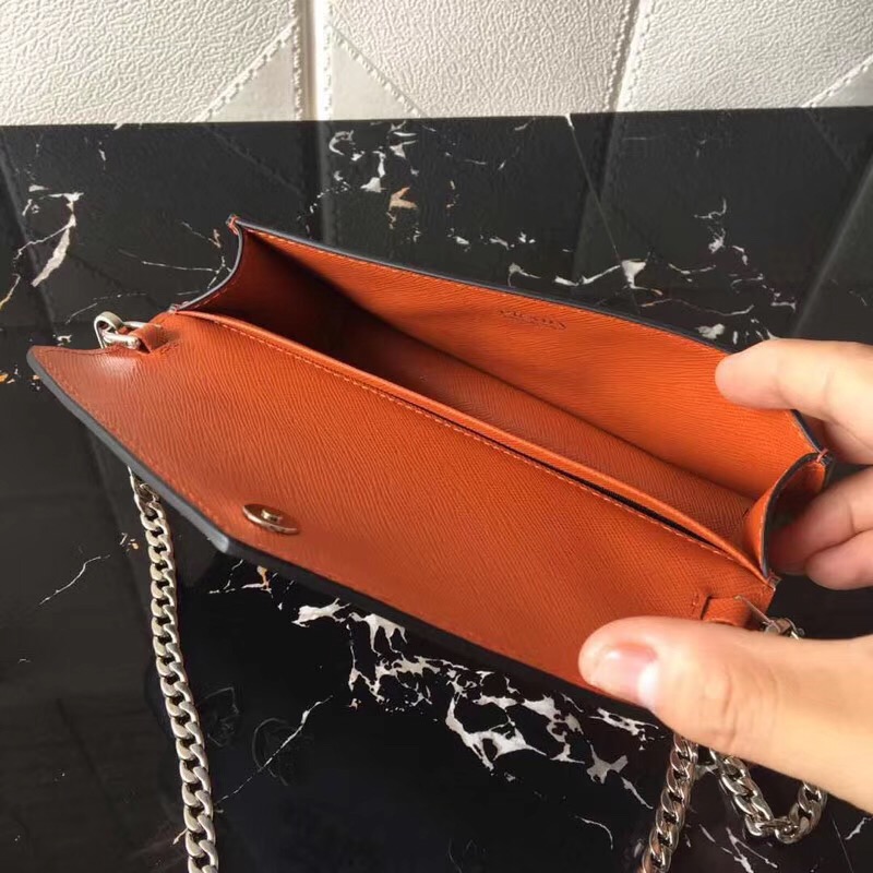 當前位置: 首頁>Prada|普拉達>Prada女包> 1DH044 Prada新款 Saffiano皮革 普拉達斜挎包 拼色鏈條包 海藍配木瓜色