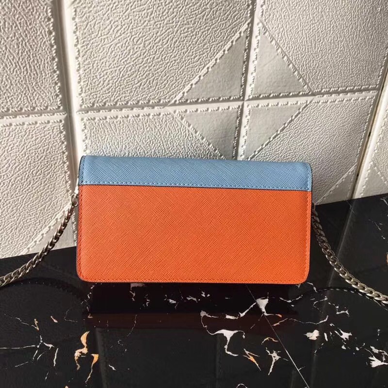 1DH044 Prada新款 Saffiano皮革 普拉達斜挎包 拼色鏈條包 海藍配木瓜色