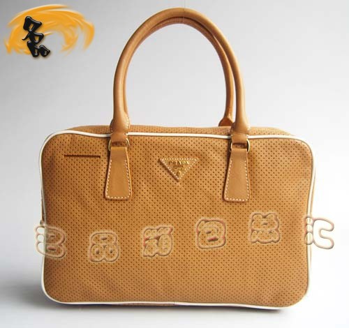 29152 Prada最新款 小孔高檔牛皮女包 Prada手提包 Prada經(jīng)典款 杏色