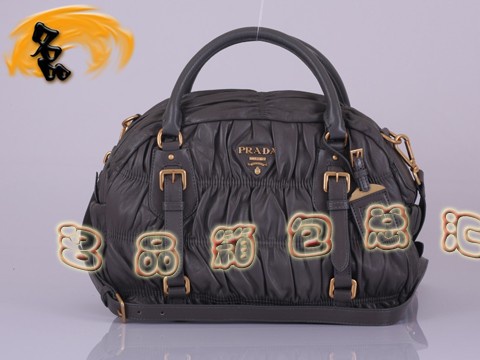 • BL0397 普拉達最新款褶皺羊皮手提包 Prada斜挎包 普拉達休閑包 Prada女包 灰色