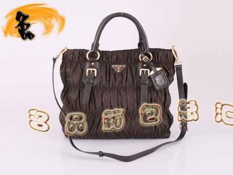 BN1618 普拉達防水尼龍帆布女士斜挎包 Prada手提包 最新款褶皺系列女包 啡色