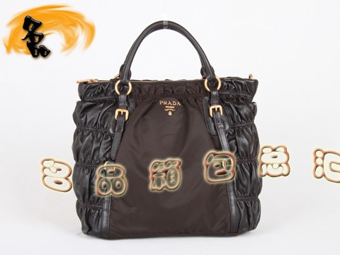 BN1790 普拉達最新款褶皺系列羊皮女包 Prada手提包 Prada斜挎包 防水帆布包 啡色