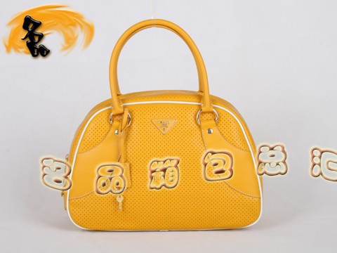 • BR0652 Prada休閑包 新款時尚休閑包 網孔真皮女包 普拉達手提包 黃色