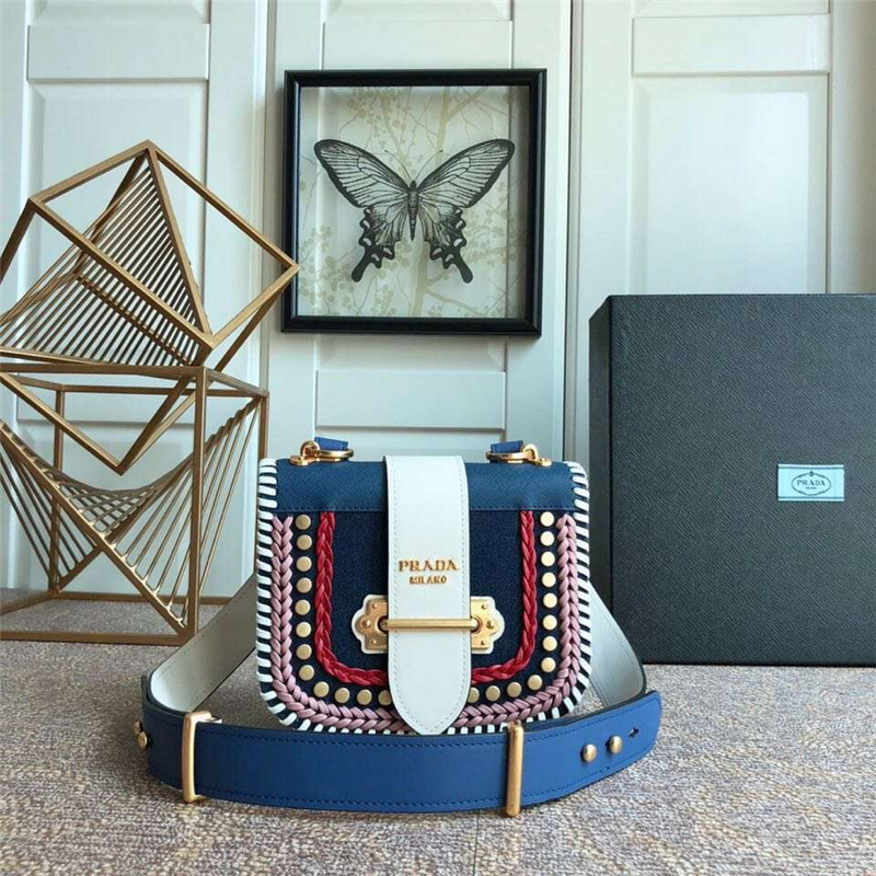 當前位置: 首頁>Prada|普拉達>Prada女包> lBD0741 Prada 手工編織 進口牛皮 鉚釘裝飾 普拉達肩包 藍色