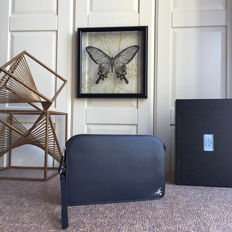056V Prada錢包 普拉達錢夾 Prada男士手拿包 PRADA男包 深藍色