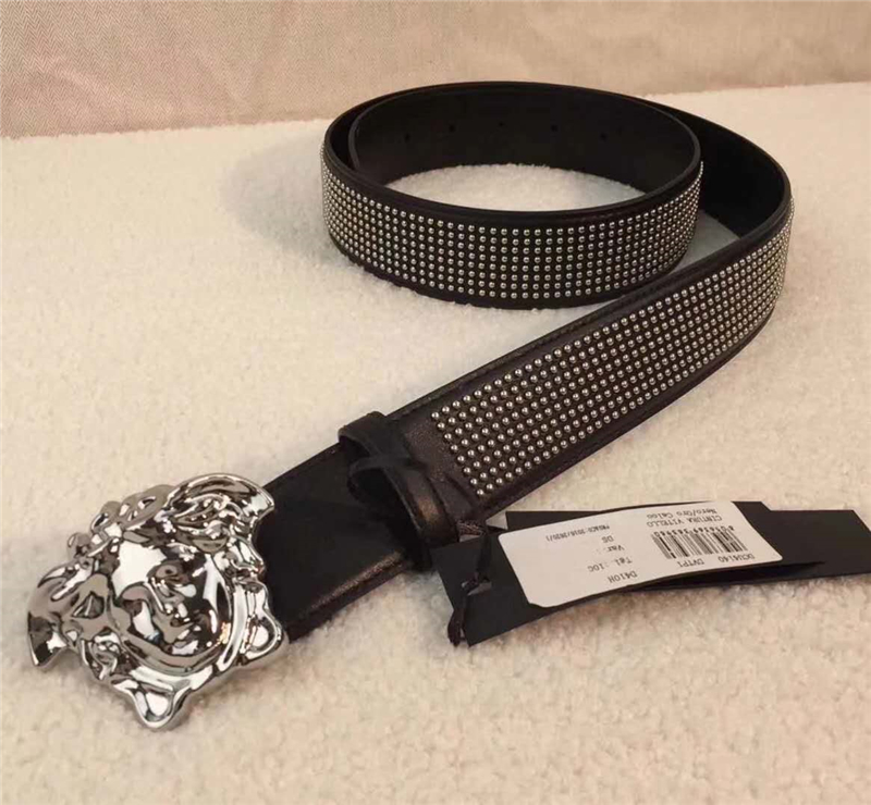 • 范思哲Versce 2017新款皮帶 美杜莎扣頭皮帶 男士腰帶牛皮 黑色銀扣