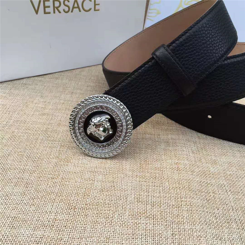 Versace 范思哲 2017新款皮帶 美杜莎扣頭 鑲鉆 荔枝紋腰帶 銀色扣
