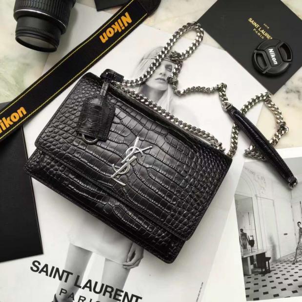 • 詳細介紹:爆款圣羅蘭YSL SLP 王子文同款鱷魚紋款 進口鱷魚紋牛皮,根本你都分不出是鱷魚紋還是鱷魚皮,這質感就得配這亮面的白鋼五金,看清楚皮紋哦,這是專柜剛出的皮紋哦不同以前的皮紋,五金也是亮的,別買到不對版和鬧笑話,而且軟來又不是硬邦邦的那種,好皮胚壓出來的效果還是嗷嗷的,Saint Laurent YSL sunset 中號 鱷魚紋 肩包 鏈條女包