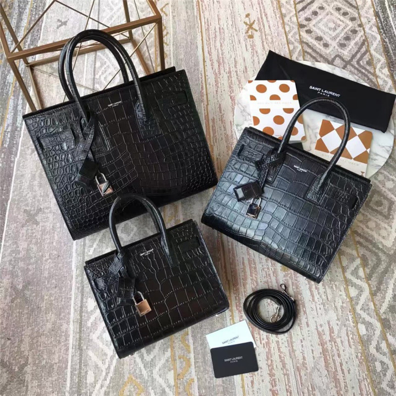 • SL0008 YSL女包 SLP經(jīng)典款Sac de jour鱷魚紋風琴包 圣羅蘭2017年新款手提包 黑色