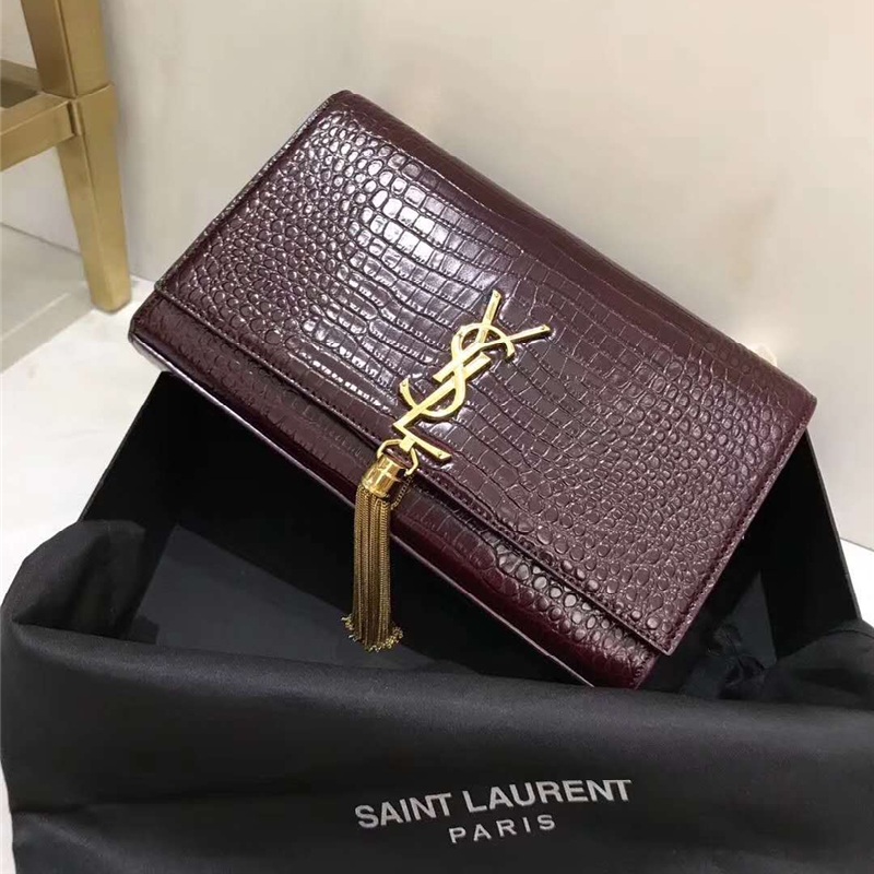 326076 YSL圣羅蘭 專柜最新 細鱷魚紋 流蘇包 棗紅金鏈