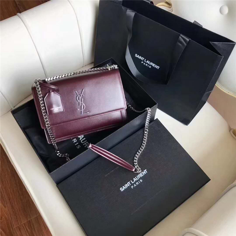 • 442906 YSL圣羅蘭 Sunset最新 牙簽紋牛皮 翻蓋鏈條包 棕色