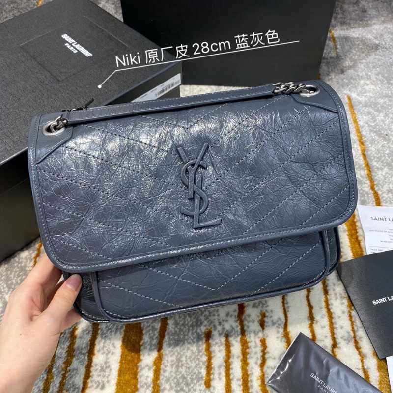 • 498894 YSL圣羅蘭 Niki medium 28中號 進口原廠皮 藍灰色