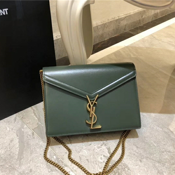 • 532750 YSL女袋 CASSANDRA 中號 字母標志 拉頭光面 圣羅蘭信封皮包 深綠色
