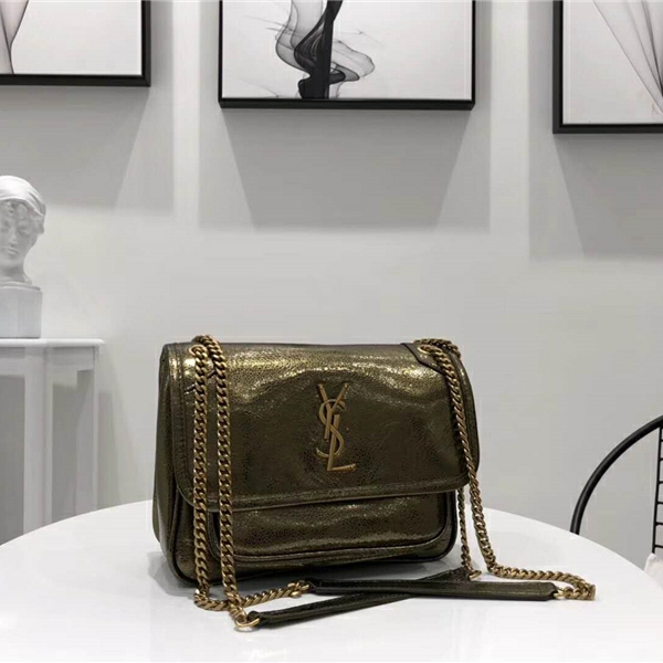 - 533039 YSL女包 NIKI系列 真皮鯊格紋 小號(hào) 圣羅蘭翻蓋包 YSL鏈條肩包 青銅金
