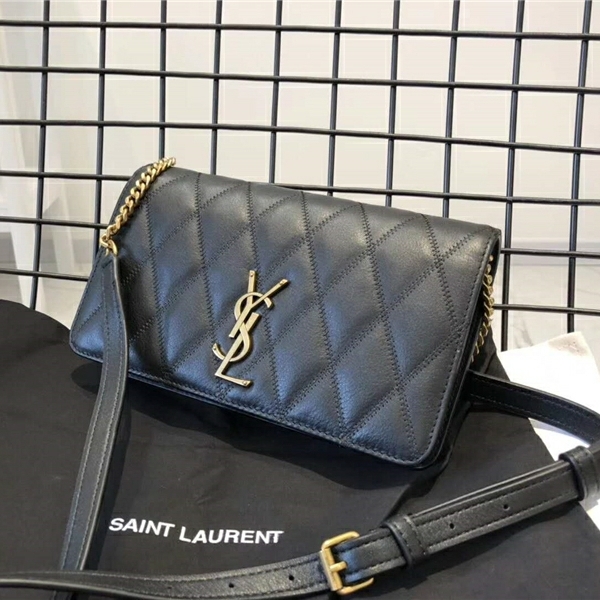 568906 YSL女包 Angie 菱格絎縫 圣羅蘭斜跨包 真皮 YSL鏈條肩包 黑色