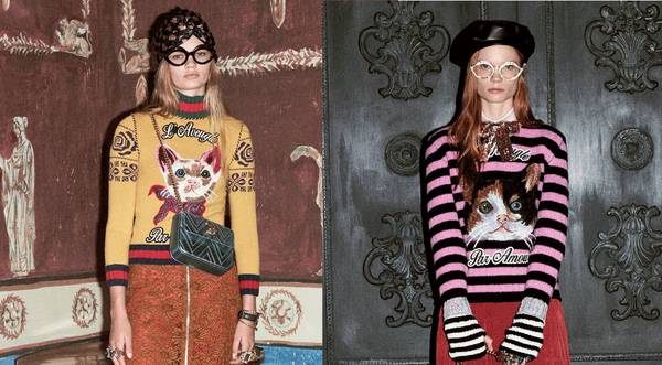 所以她讓愛(ài)貓 “南瓜” 穿著洋裝蒙著眼睛抱著Michele,仿佛貓咪依偎著主人不斷地撒嬌。貓咪手里還提著 Gucci 手袋,那蒙著眼又代表了什么?因?yàn)椤皥?zhí)迷于愛(ài)”!