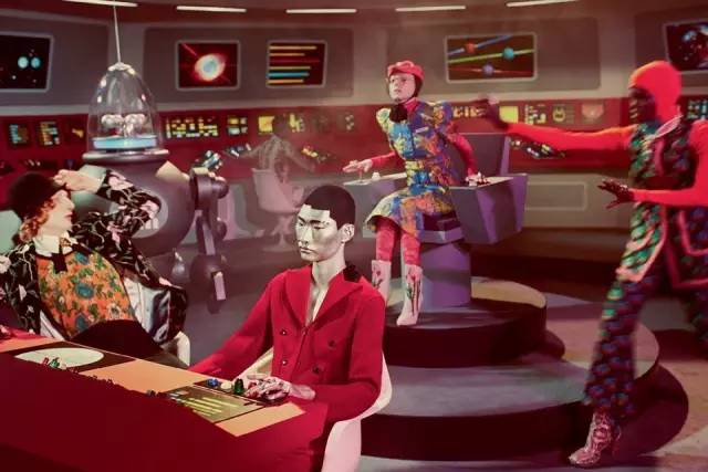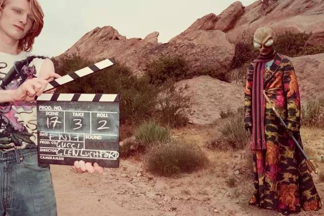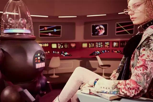 Alessandro Michele受到了20世紀50年代和60年代的科幻電影的啟發,聯手攝影師Glen Luchford復刻了幾個經典的科幻電影場景。從著名的星際迷航,到恐怖電影黑湖妖譚,。人形、異形、機器人、地球、甚至恐龍的混合陣容 混合了色彩豐富和裝飾性的收藏品,創造出豐富的想象和幻想。