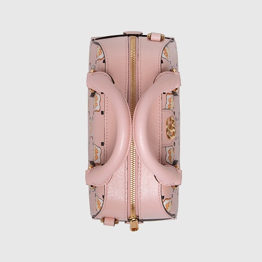 Ophidia 迷你保齡球包和小號托特包采用淺粉色皮革制作包身,戴著吐司🍞頭套的呆萌柴犬占領 GG 圖案,菱格方塊中還隱藏著插畫師「Pikarar」的簽名。甜美粉嫩的色調和早春櫻花季格外適配,寬敞的內部空間也很適合郊游出行~
