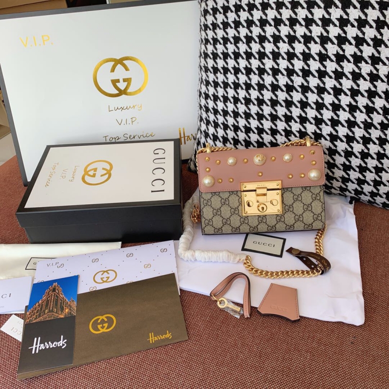 GUCCI Padlock系列中有兩款最經(jīng)典,一個是小號女士肩背包,另外一款是小號GG女士托特包