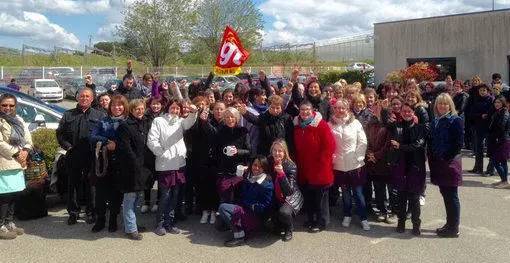 上圖:位于 Manufacture de Maroquinerie du Dauphiné 的員工抗議現場