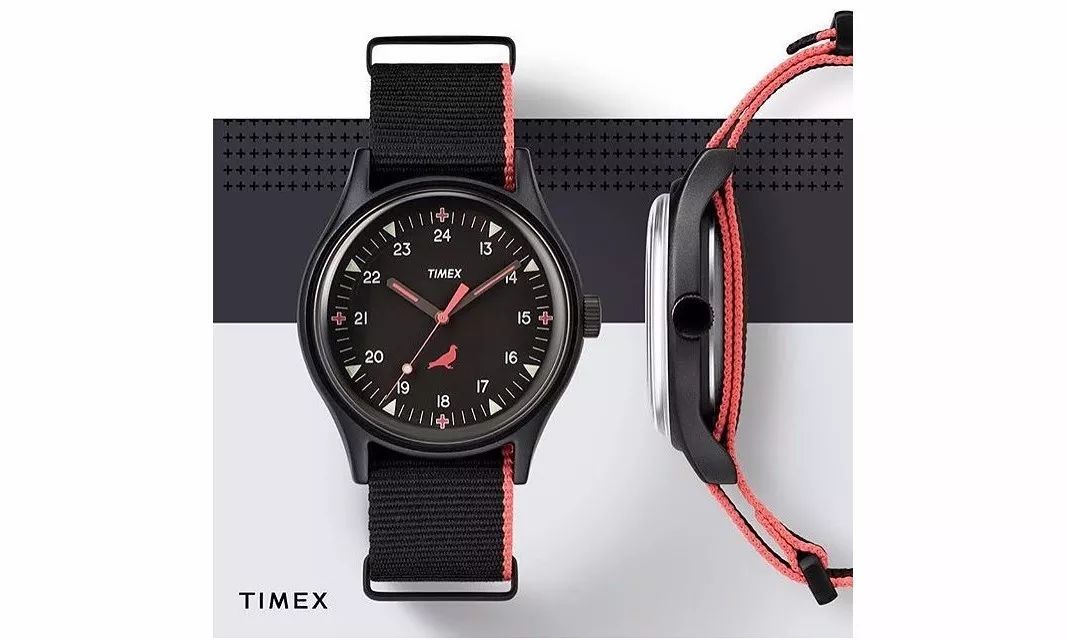 在與 Nike SB 推出全新黑鴿子之后,街頭品牌 Staple 此番又與手表品牌 TIMEX 展開合作,為 TIMEX 經典的軍事風格手表注入了全新 “黑鴿子” 風格。這塊表以黑色搭配紅色呈現,表盤點綴紅色 Staple 經典的鴿子圖案,表帶同樣以黑色拼接紅色展現。特別的是,表盤數字是以 24 小時制來顯示的,在談及為何如此設計時,Jeff Staple 表示:“工作需要我經常全球各地飛,很多國家都使用 24 小時制,這給我造成了一些困擾,有時不得不數手指。” 于是才有了這種一目了然的設計。 目前尚未有這個款式的具體發售信息公布,喜歡的朋友不妨多加留意之后的報道。