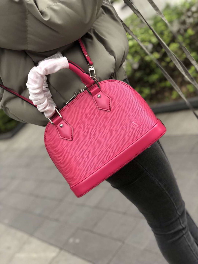 可愛迷人的 Alma BB 手袋,其原型是在 1934 年設計的、頗具藝術裝飾風格的一款路易威登經典包款。2010年,在 Alma 包款正式推出20年之際,特為擁有此款手女士的女兒設計迷你型號。Alma BB 手袋配有一根可拆卸的肩帶,用于輕便斜挎。 這款采用 Epi 皮革對經典造型進行全新時尚演繹的手袋擁有一系列艷麗、明快的色彩可供選擇。