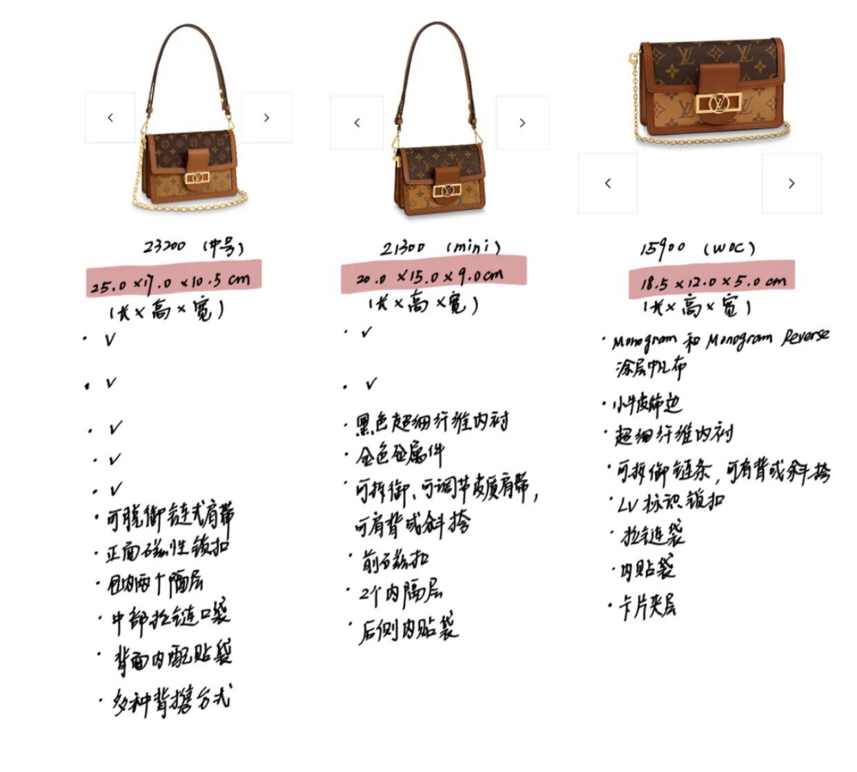 LV Dauphine達芙妮包包三個尺寸正品價格對比圖