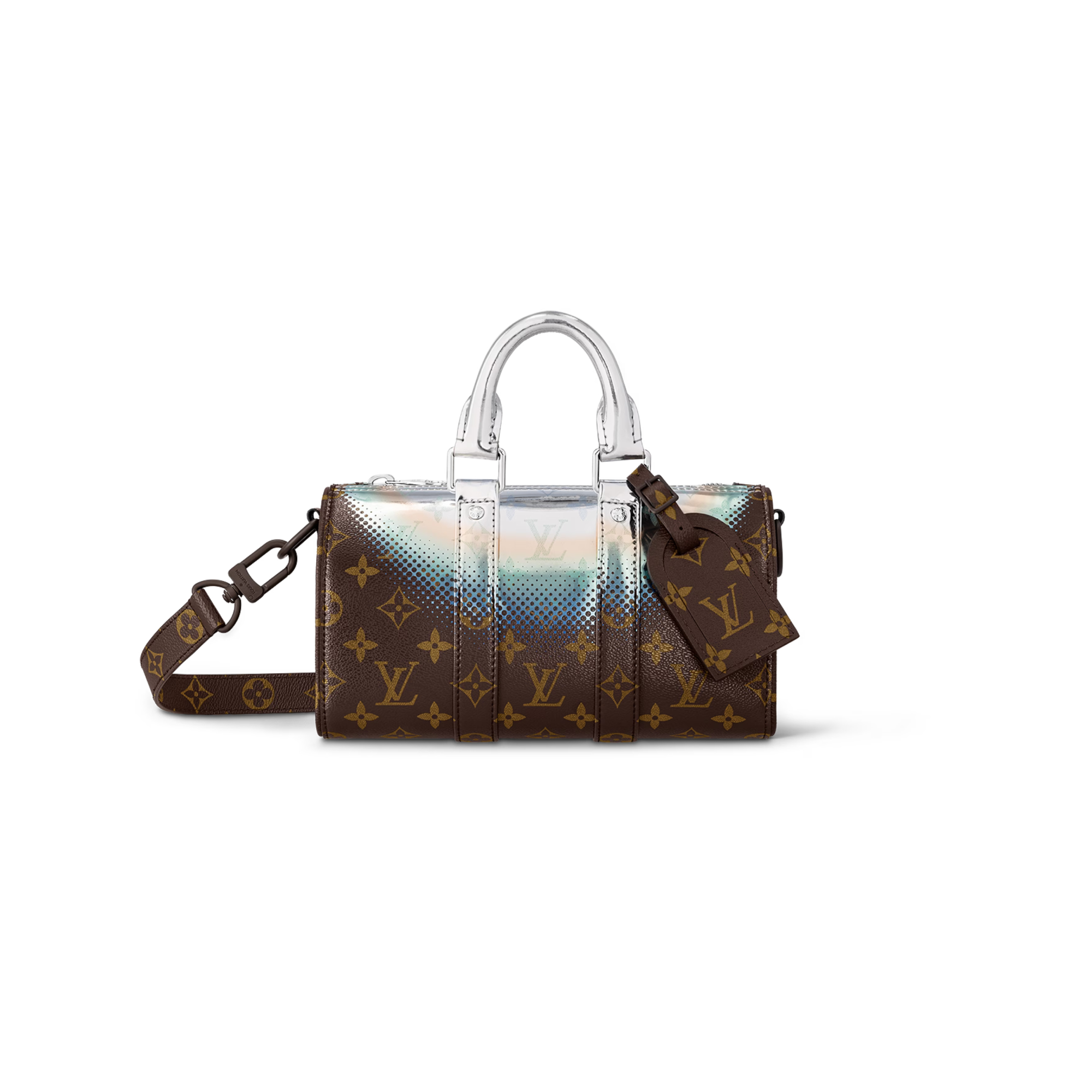 這組包袋采用全新設(shè)計(jì)的「Metallic Nebula」涂層帆布制作,即經(jīng)典 Monogram 老花自然過(guò)渡至銀色光環(huán),邊緣散發(fā)藍(lán)紫色精致光暈。