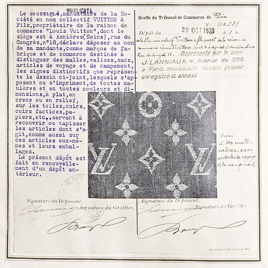 1930年 Keepall 旅行袋,藍白紅3色V字母標識由 Gaston Vuitton 設計并手繪