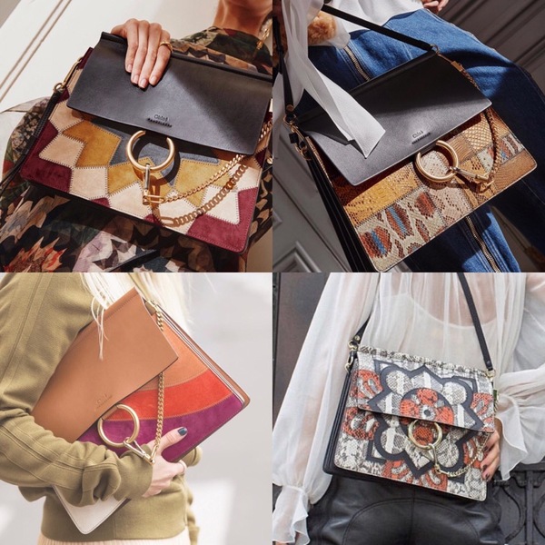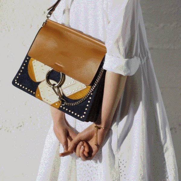 此款Chloe Faye為度假系列,光滑小牛皮和鹿皮拼接,用鉚釘印花作為裝飾,讓包款更添靈動與俏皮感!