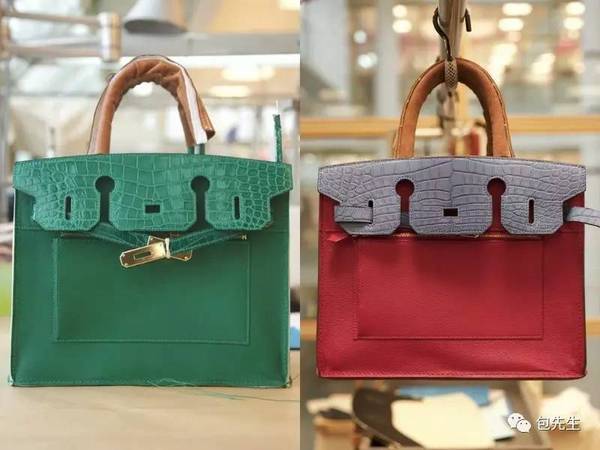 兩只還在制作中的鱷魚皮鉑金包