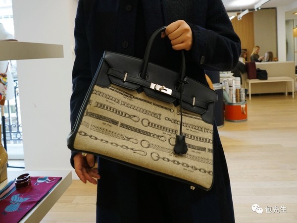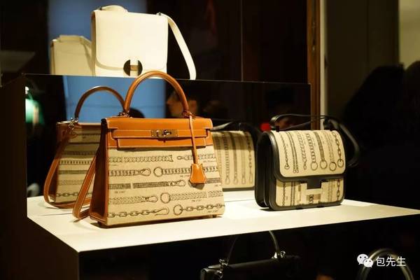 帆布設計的還有經典的Birkin、Kelly和Constance,好像古老的設計紙一樣,印著鏈條圖案的帆布拼接皮質的部分,顯得特別復古,這幾只包就好像從Hermès的資料庫里拿出來的藏品一樣,有種特別厚重的歷史感。