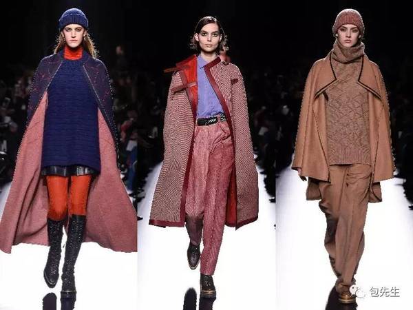 Hermès的斗篷已經是很經典的單品,這一季也有很多展示,使用了更鮮艷一點的顏色,走路的時候飄起來露出里面的搭配,非常時髦。