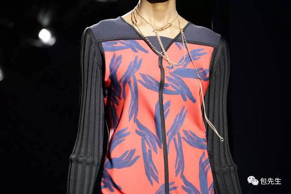 這次特別讓人印象深刻的有絲綢拼接羊毛衫的設計,據說這樣的拼接方法是Hermès的獨家技術。頂級的絲綢材質,用上非常藝術化的抽象圖案,搭配溫暖的羊絨袖,讓實用簡潔的設計一下子高級了很多。
