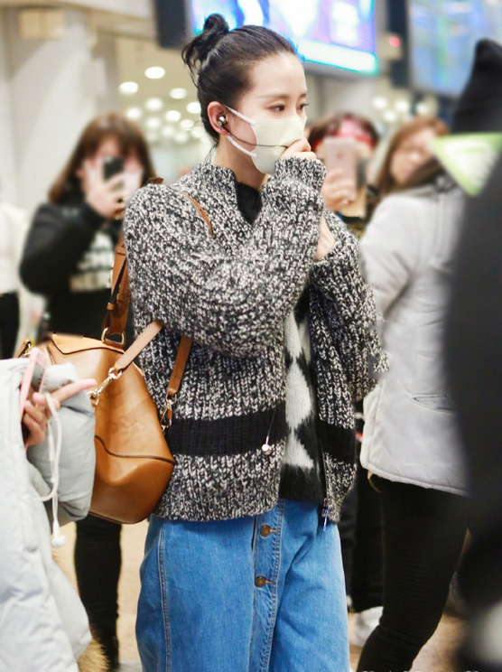 詩詩就在機場背起了雙肩包,不同的是,氣質仙女詩詩選擇了單肩背,時髦又有趣~ 黑白針織外套與內搭毛衣相統一,搭配牛仔紐扣半裙活力十足。