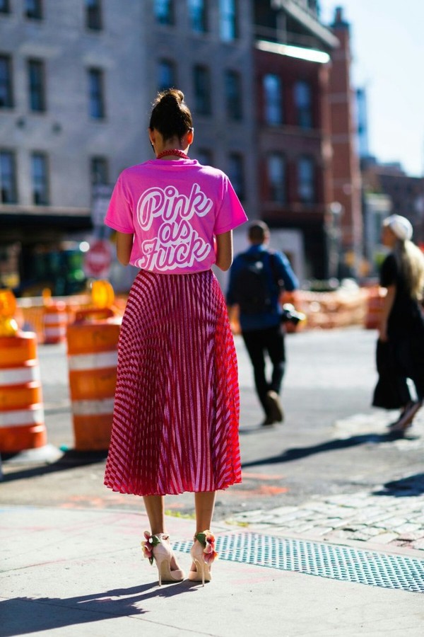 看似簡單的T恤卻在背后深藏玄機,大大的字母讓整套look瞬間充滿活力與個性,粉色絕對不是甜美少女的專利。你更需要Pink Power。