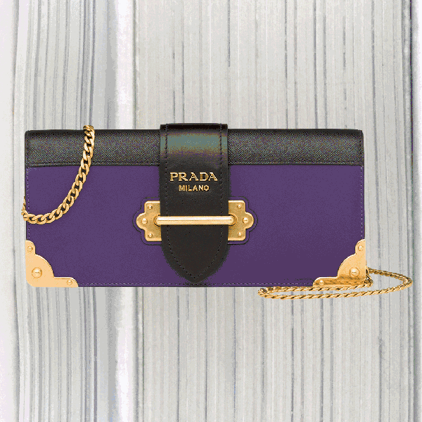 17春夏Prada新款Cahier手袋系列新增添了優(yōu)雅長(zhǎng)款手包,搭配的纖細(xì)金屬鏈條搖身一變成為雅致肩包~▼