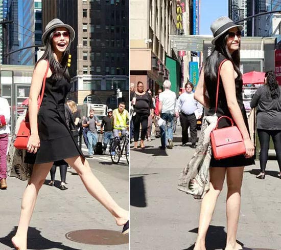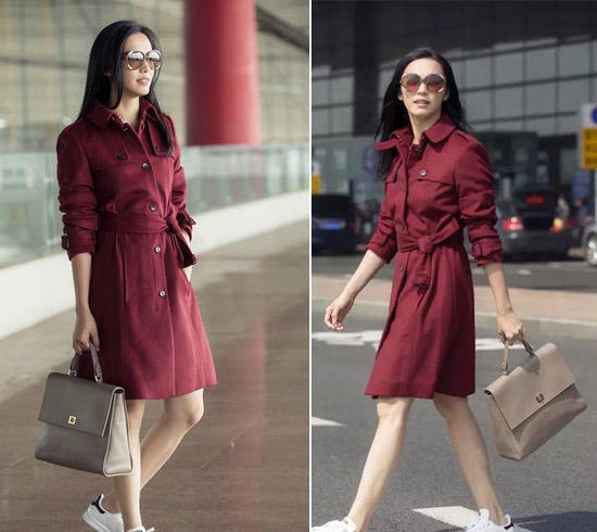 想要靠詭異獵奇的服飾吸引眾人眼球的大有人在,一不小心就會走上“不作不會死”道路。還不如像以“一切從簡,但足夠漂亮”的觀念為主的姚晨一樣,簡潔的小黑裙搭配紅色的Hugo Boss,再與懶人鞋碰撞就這樣一臉笑容地走在街頭,完完全全就像一個少女。這個秋冬,不妨選擇一款跳躍色彩的包袋打破沉悶感覺,增加整身裝束的輕盈感。