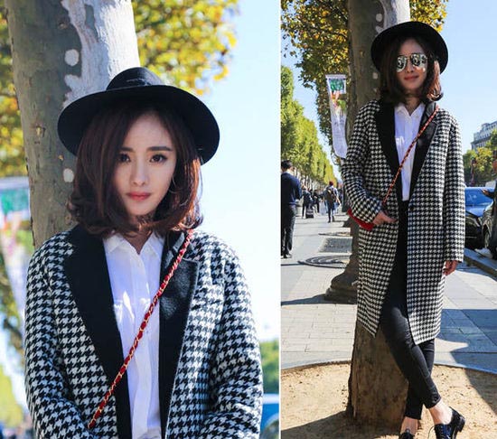 會用小香背包裝嫩的可不止楊冪一人,可兒的技巧更高超,還會戴上一頂寬檐帽顯臉小