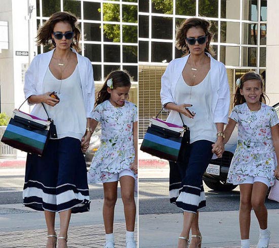 時間過得真快,杰西卡的女兒都在這么大了!說回包包,原以為這些彩虹款的包包與“媽媽”是絕緣體,不過你看杰西卡一樣駕馭得很好,時髦而不矯情。
