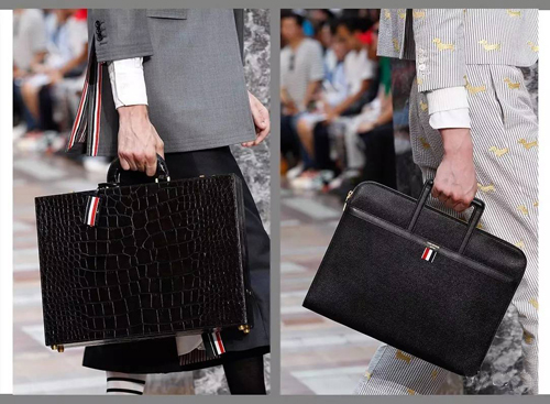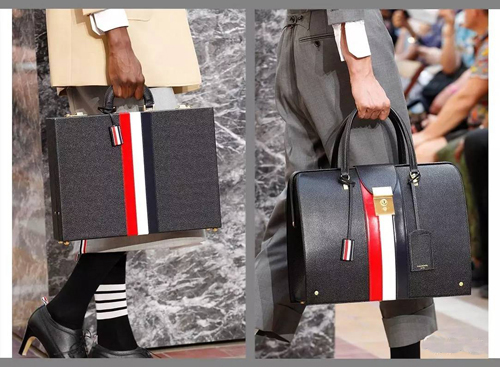 Thom Browne這季難得沒有推出特別夸張的包包設(shè)計,回歸到最經(jīng)典的大鎖扣,還有方方正正的設(shè)計。其實Thome Browne的包雖然單價很貴,但是確實不怎么過時,喜歡的人可以入手,一用就是很多年。