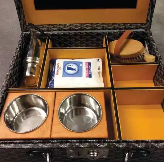 就像它的蒙頭鐵粉老佛爺Karl Lagerfeld一樣,不僅定制了全套的旅行箱,就連自己愛寵Choupette的餐具也是Goyard包辦的。Karl用Chanel征服了世界, 而他卻被Goyard所征服。