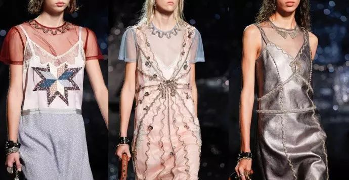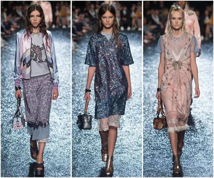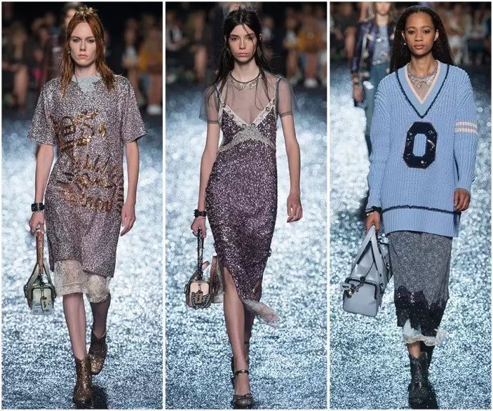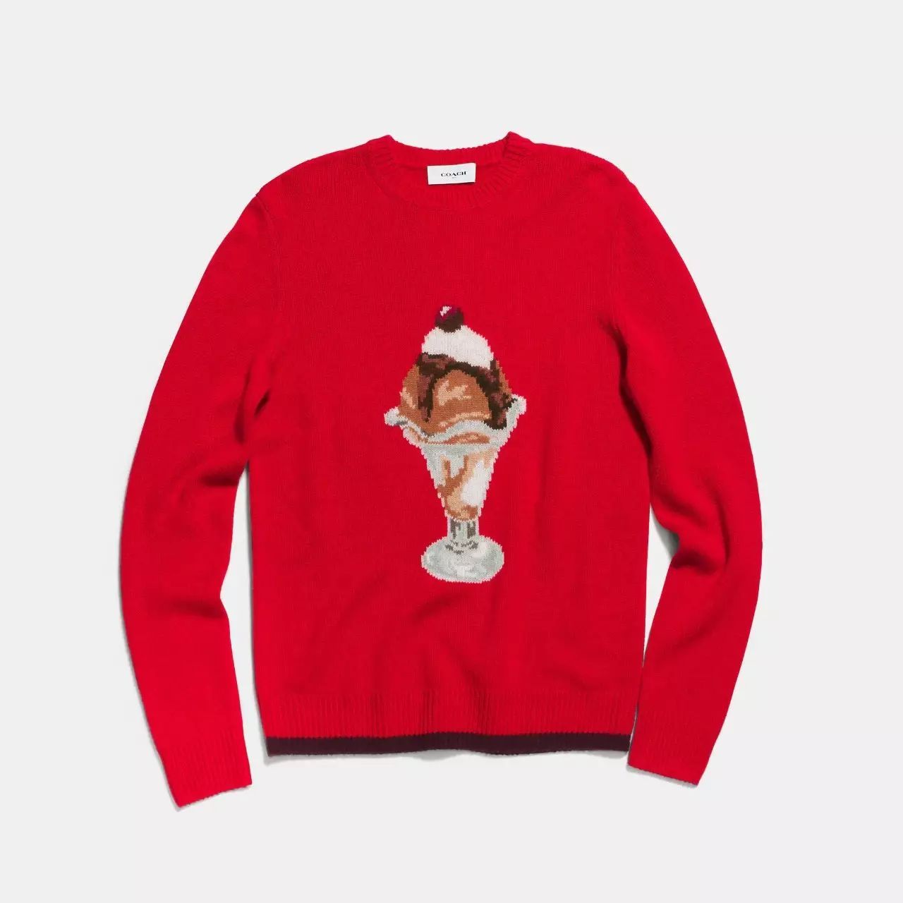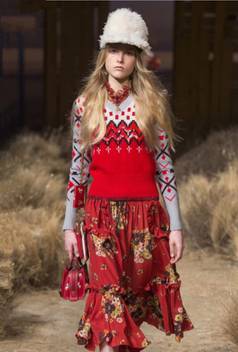 Coach FW17 紅色印花針織衫搭配印花裙的秀場造型