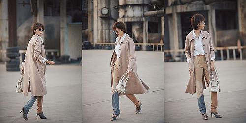 張儷日前曝光了一組街拍寫真,一身裸色大衣搭配白色襯衫,手拎白色Faye Mini雙肩包,優雅帥氣的造型中蕩漾著春日的氣息