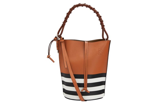 羅意威條紋裝飾棕色小牛皮Gate Bucket Handle手袋
