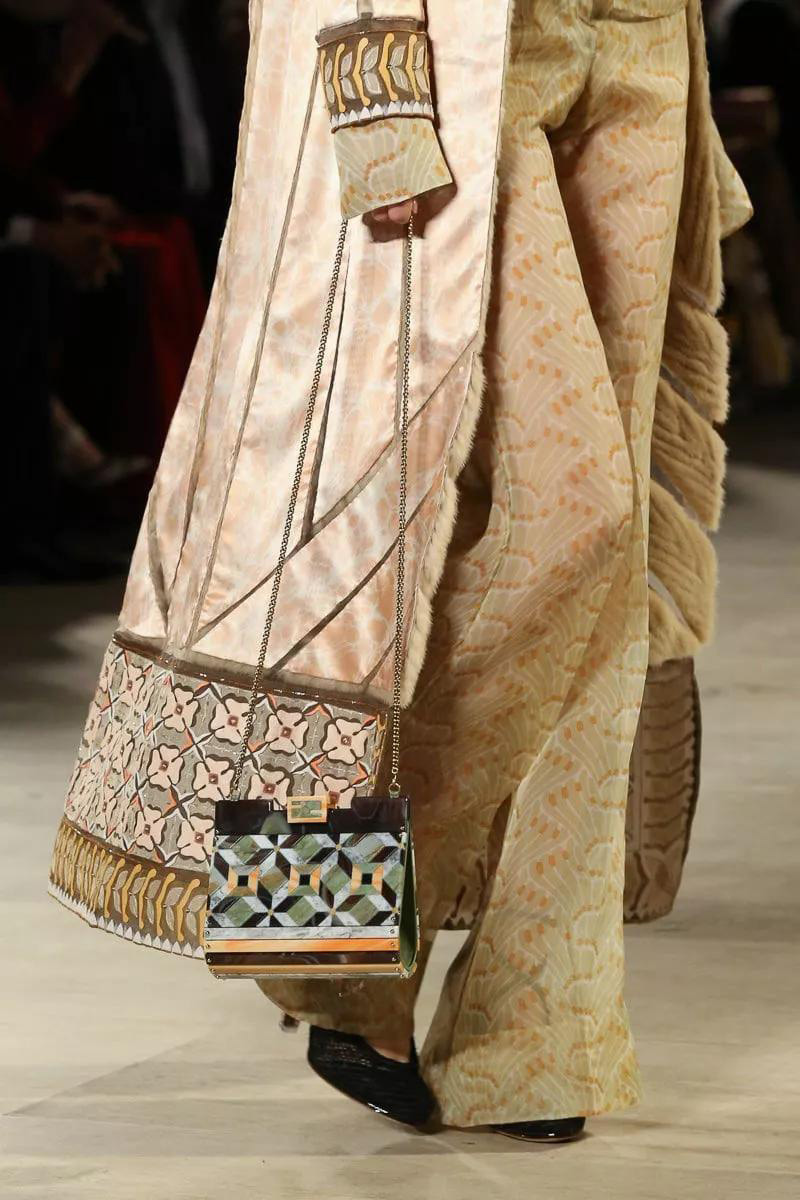 芬迪FENDI2019秋冬高級定制包袋一覽,Fendi此季在羅馬進行的高級定制秀,高級定制系列更加華麗奢華,并不是每日都在使用,刺繡,毛皮,串珠,紗織,立體復古的圖案,充分展現了時尚藝術與文化的融合風格。
