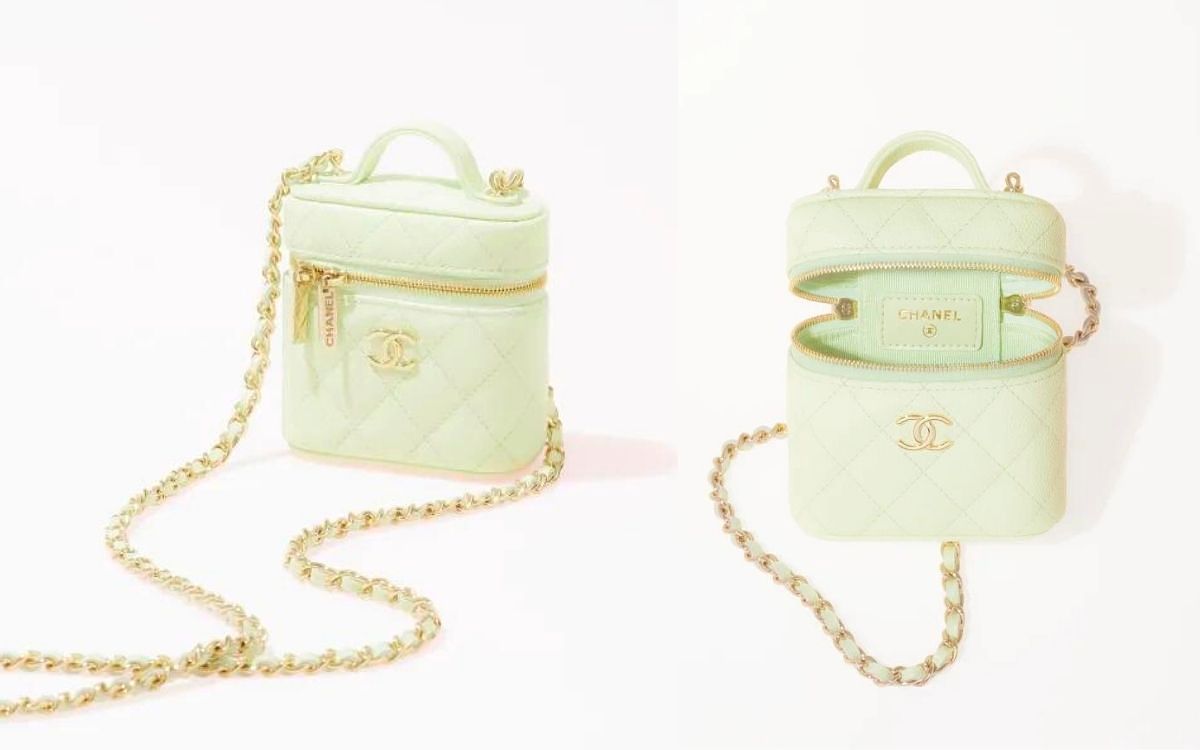 雖然許多人挑選精品包的首選一定是基本黑色,但Chanel夏季的繽紛馬卡龍色搭配上化妝煉條包型,真的超級Q!日常只要與基本色系或相近色搭配,也不會太困難~若有預算的女孩,可以下手這種特殊色反而更是值得收藏!