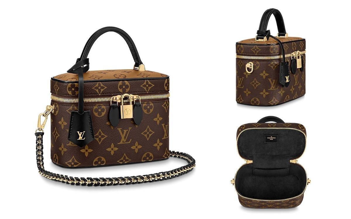 妳一定要知道這款VANITY化妝包,它是LV超熱門的包款之一!LV將Nice梳妝袋打造成時尚包款,長方形的盒子狀加上提把和皮革鏈帶,無論手提或肩背非常實用又百搭。不管是經典的MONOGRAM印花,或新推出的大印花款都超可愛好看,想要更低調的女孩可以選擇黑色壓紋印花喔!