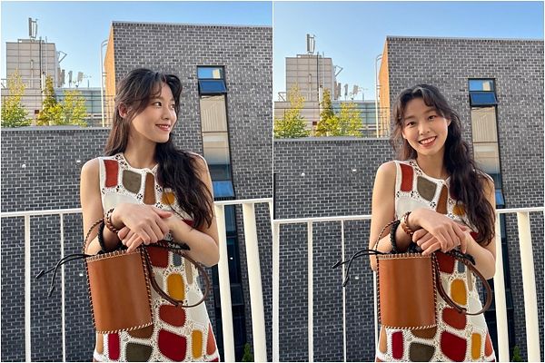 網友號稱「大勢女神」的女團偶像──雪炫,以一身春夏勾針拼接彩色洋裝、搭配小型Louela棕褐色水桶包…閑鞋,曬包曬鞋之余更大露纖纖美腿,用「高糖分」穿搭演繹Louela水桶包的甜美姿態。